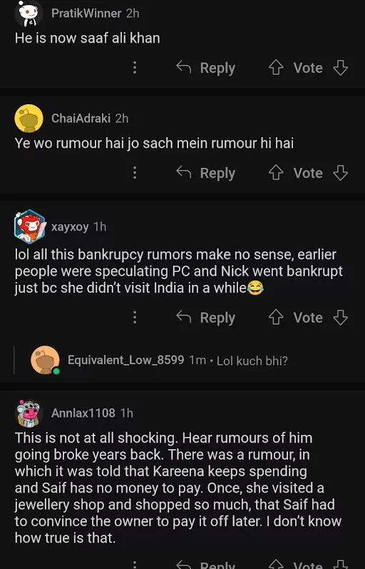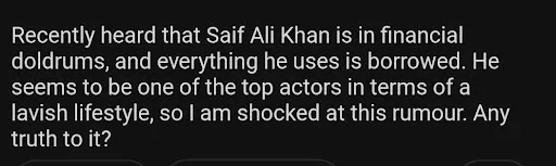 Tell us your opinion on the hearsay that Saif Ali Khan goes bankrupt.