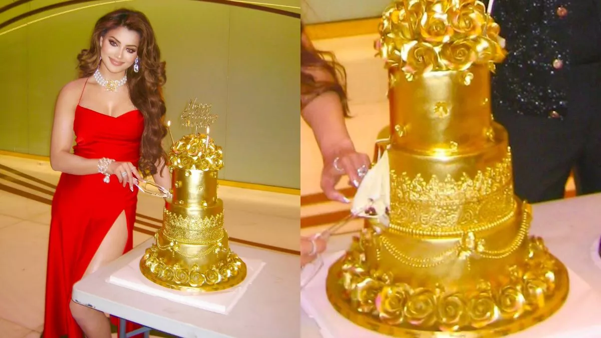 Urvashi Rautela recently garnered attention for cutting a three-tier gold cake