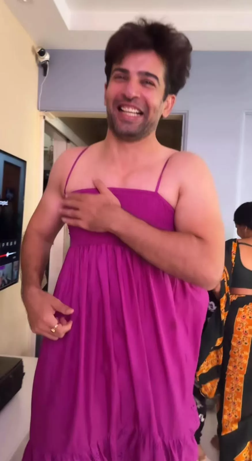 On March 28, 2024, a video was uploaded from Jay Bhanushali and Mahhi Vij’s daughter, Tara’s Instagram handle, probably run by her mommy. In the video, the actor can be spotted wearing a pink-hued tiered maxi dress that featured thin straps. He looked absolutely hilarious, wearing the same as he came out of his room. Afterwards, he was seen giving high-fives to his kids, and little Tara was seen jumping in excitement when she got such a glimpse of her daddy. Sharing the photo, she wrote, “Papa”, followed by multiple smiling emojis.