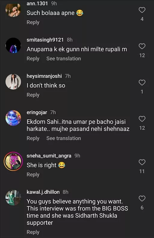 Rupali seemed quite miffed with Shehnaaz and indirectly took a jibe at her, imitating her style of talking. Rupali further added, “Aisa kon kata hai yaar? Like seriously, Who does that? Agar yeh dikhoge toh bohot trolling hogi meri.” Netizens mostly agreed with Rupali and backed her opinion on Shehnaaz and even added that the BB13 alum acts cute and innocent to gain attention.