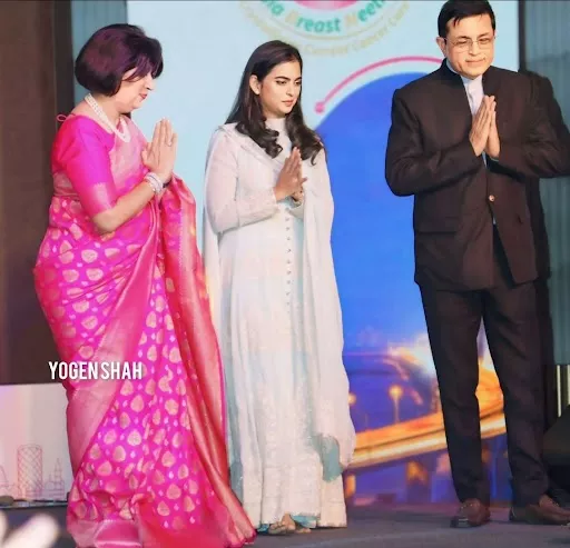Isha Ambani accentuated her look with neutral makeup and pink-tinted lips. She left her tresses in loose waves and completed her look with a pair of ivory-toned juttis. Isha was attending a book launch event at the Reliance Hospital. The book titled as, ‘Being Breast Aware—What Every Woman Must Know,’ is about breast cancer awareness. Isha also removed her shoes at the stage during the diya lightening session.
