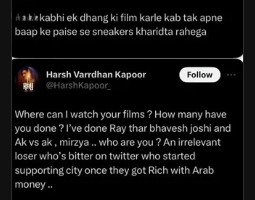 Harsh Varrdhan Kapoor gives it back to a troller who accused him of buying sneakers with dad’s money