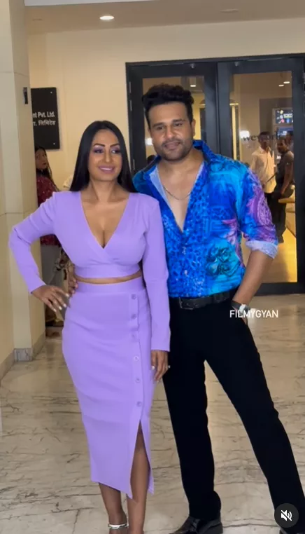 The bride-to-be was also seen posing with her brother, Krushna Abhishek and sister-in-law, Kashmera Shah at her bridal shower venue. While the comedian was seen dressed casually in a blue printed shirt paired with black pants, his wife, on the other hand, looked fabulous in a lavender-hued co-ord set comprising a full-sleeved top and a side slit midi skirt.