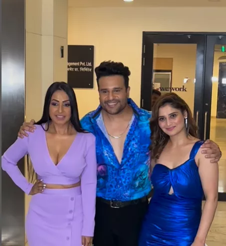Arti Singh poses with her brother, Krushna Abhishek and sister-in-law, Kashmera Shah