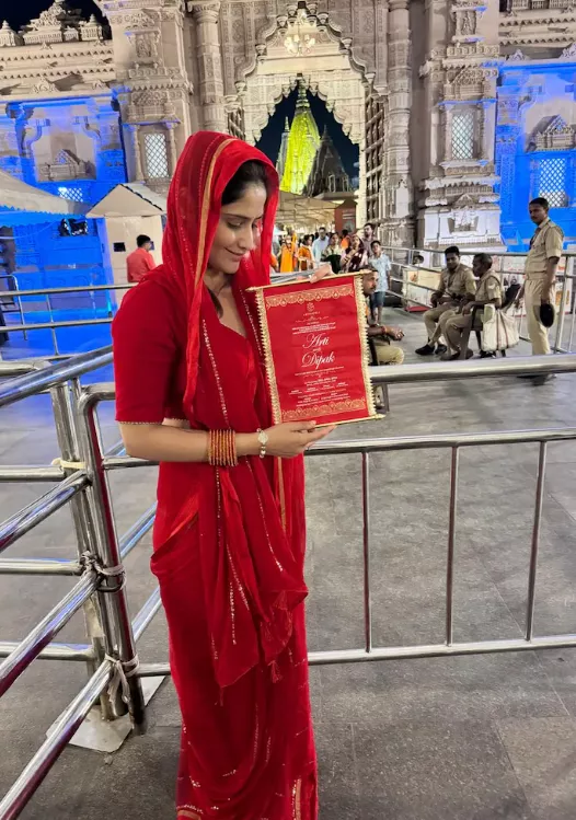 Ahead of her big day, Arti Singh visited the revered Kashi Vishwanath temple, to seek blessings. The actress was seen donning a beautiful red saree as she posed with her wedding invite in her hand. Previously, in an interview, the Bigg Boss 13 fame actress talked about meeting her soon-to-be-husband, Dipak and said: