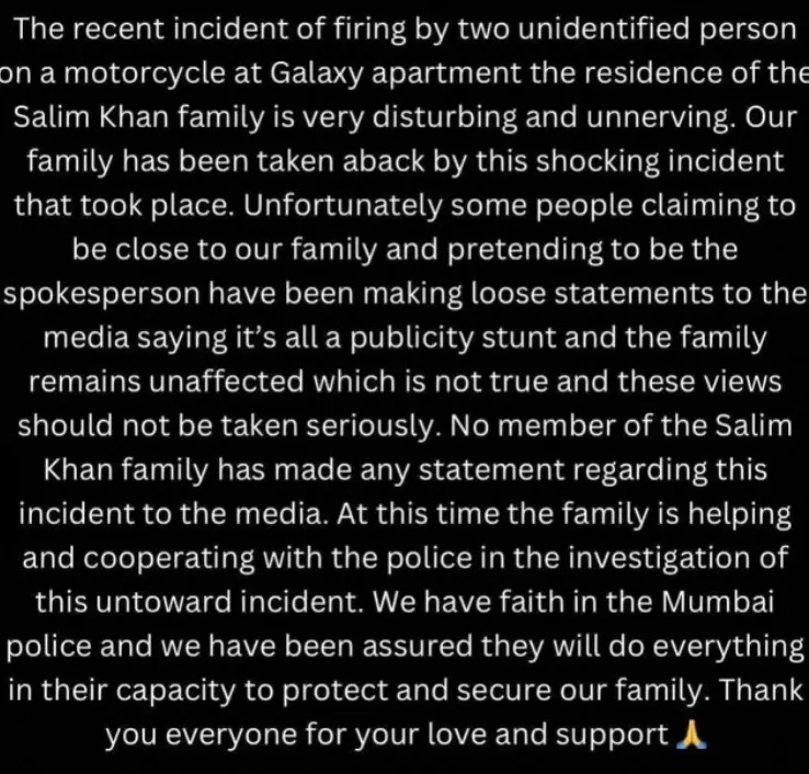 Salman’s brother, Arbaaz Khan issued a statement on behalf of the family over the attack
