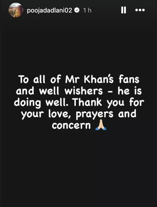 “To all of Mr. Khan’s fans and well-wishers – he is doing well. Thank you for your love, prayers and concern.”