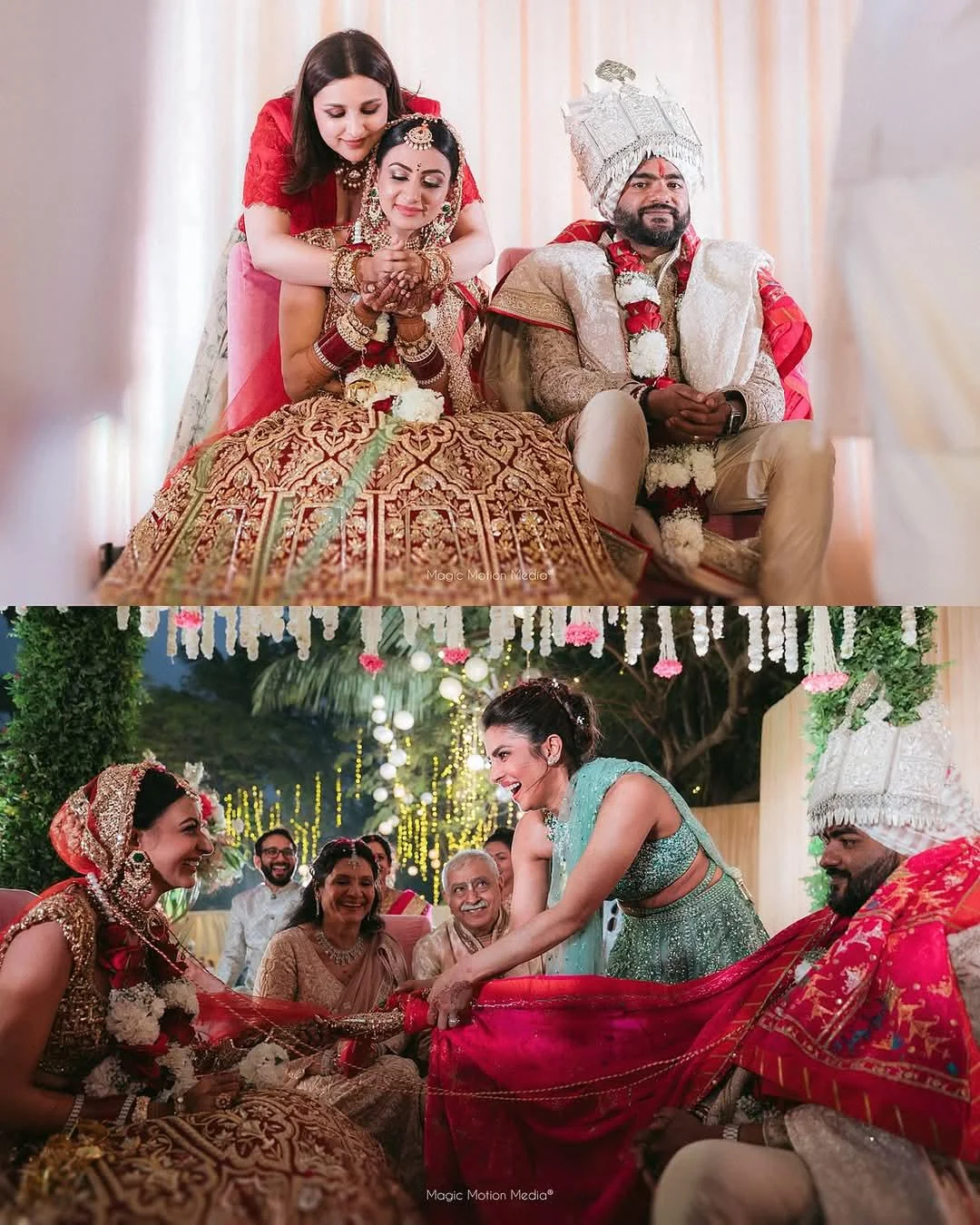 Parineeti Chopra was spotted after attending Siddharth Chopra’s wedding and revealed that the wedding was really ‘lovely’. She was ecstatic to attend the wedding soiree of her cousin, Siddharth, and posted a cutesy photo of the newlyweds on her IG handle to wish them. On the other hand, one of her photos made rounds on social media. Parineeti, in the photo, could be seen performing sisterly rituals at Siddharth and Neelam’s wedding. For the day, Parineeti wore a red-toned lehenga, which she teamed with a beige-toned embroidered skirt. Raghav also marked his presence with his wifey darling.