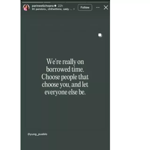 While Priyanka Chopra’s fashion goals at her brother, Siddharth Chopra’s wedding left everyone’s jaws dropped on the floor, Parineeti’s absence from the pre-wedding soiree had been raising eyebrows. Taking to her IG handle, Parineeti shared glimpses from her shooting days, which roughly means that she was busy with her professional commitments. Well, it was one of her IG stories that grabbed the attention, wherein she dropped a cryptic note about choosing people. Her note could be read as: