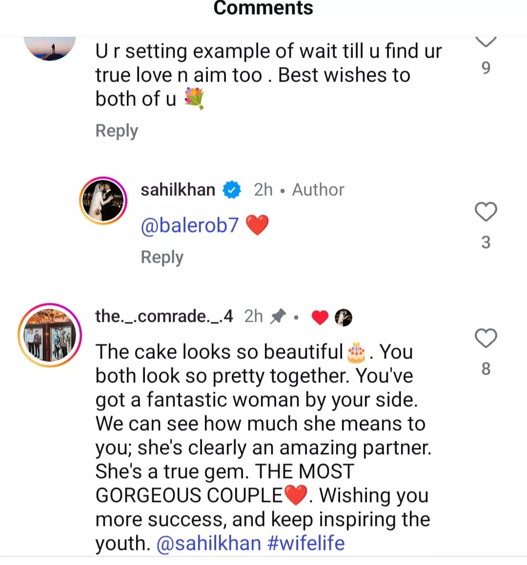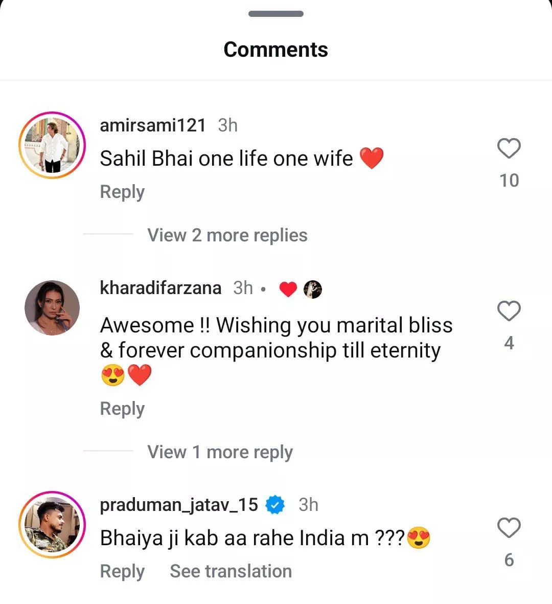 One of Sahil’s fans on Instagram shared that he was setting an example of waiting for the right person, as true love takes time to happen. The fan sent the couple best wishes, while another wrote, “Awesome !! Wishing you marital bliss & forever companionship till eternity.” A third die-hard fan wanted to see the wedding pictures of Sahil and Milena and commented, “Sahil bhai apni shadi ki photo to upload kro hame aapko dekhna he!”. His other fans appreciated the wedding cake, called it ‘beautiful’ and said Sahil and Milena looked pretty together.