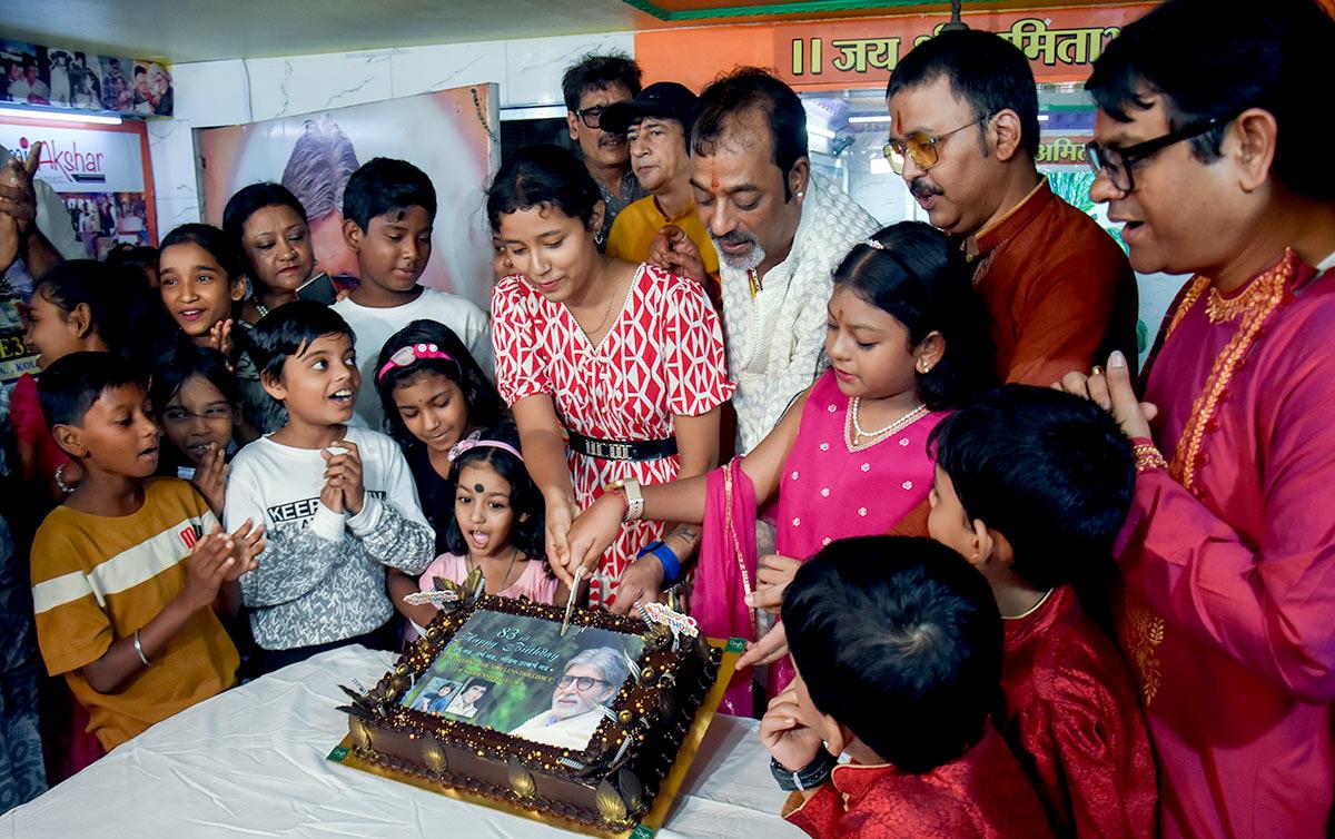 IMAGE: A celebration hosted by the All Bengal Amitabh Bachchan Fans Association at the Amitabh Bachchan temple in Kolkata on Saturday, October 11, 2025. Photograph: ANI Photo