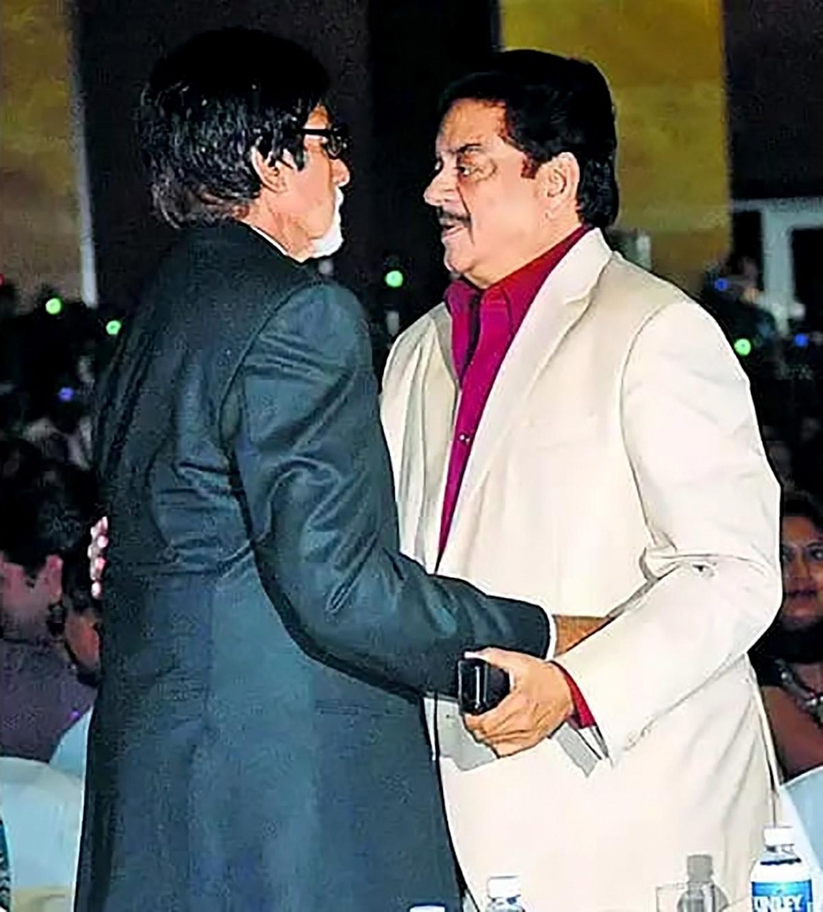 IMAGE: Amitabh Bachchan with Shatrugan Sinha who wished his colleague on X: ‘Many many happy returns of the day for our icon, role model, for everybody’. Photograph: Kind courtesy ShatruganSinha/X