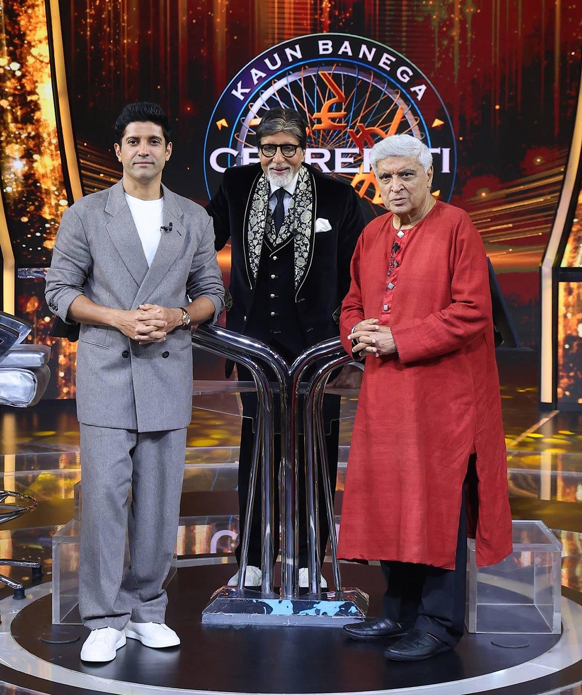IMAGE: Amitabh Bachchan with Javed Akhtar and Farhan Akhtar on KBC.
